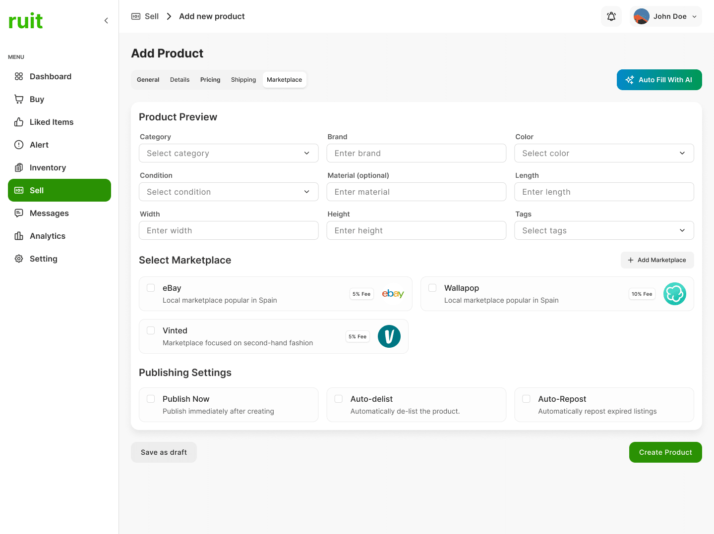 El proceso es sencillo: crea el anuncio desde cero, impórtalo o usa la función “publicar anuncio”; después publícalo en los marketplaces que elijas.