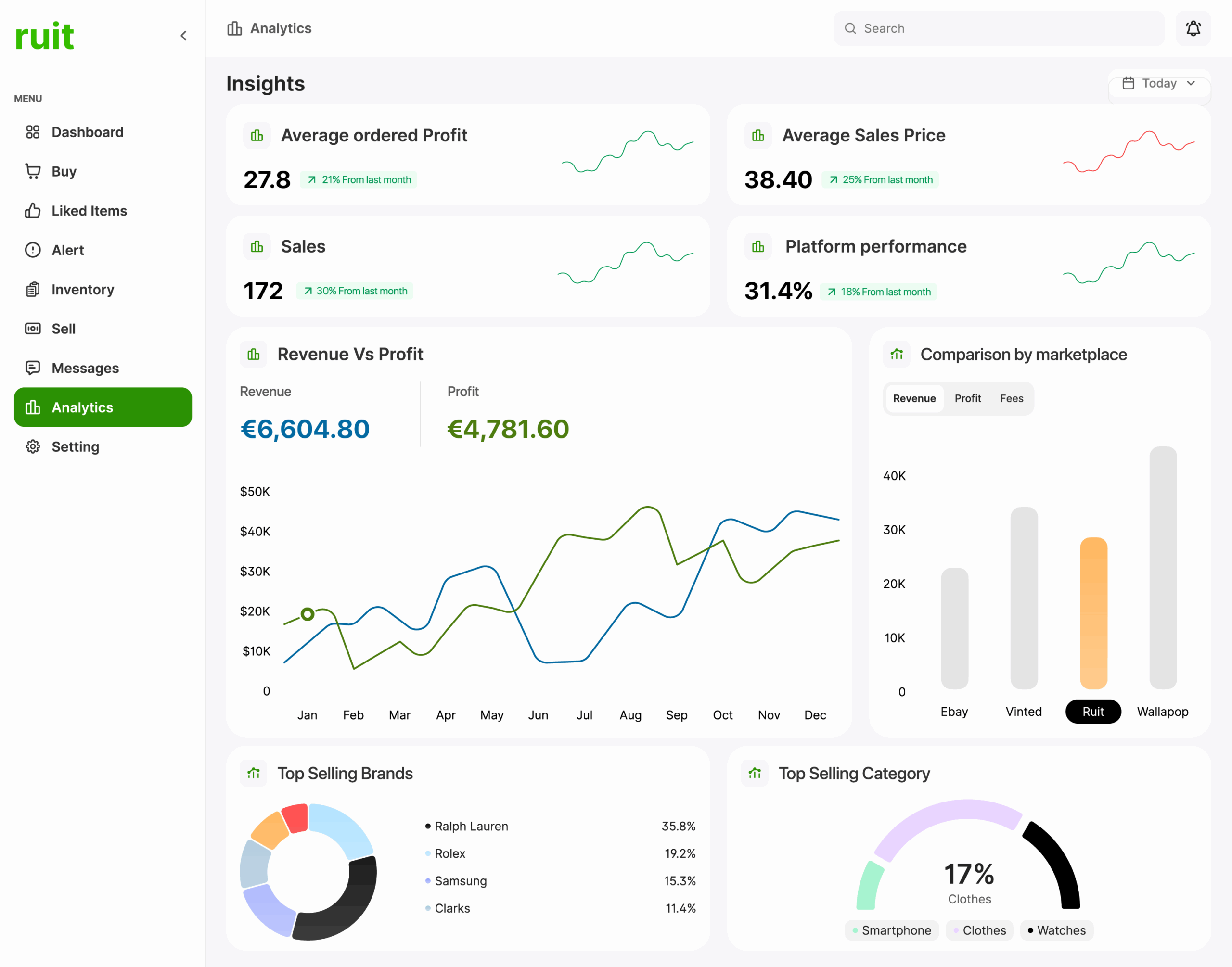 Puedes anunciar cualquier artículo permitido por las normas de cada marketplace. Ruit está orientado a artículos individuales (vintage, segunda mano o nuevos) que encajen en esas categorías. Consulta la sección Marketplaces para ver las categorías admitidas por plataforma.