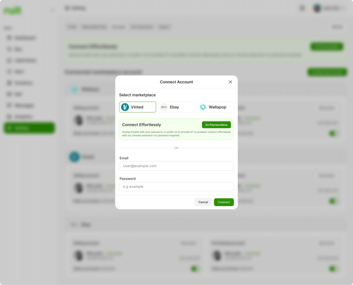 La herramienta de crosslisting #1 en España. Diseñada para resellers y tiendas de segunda mano.